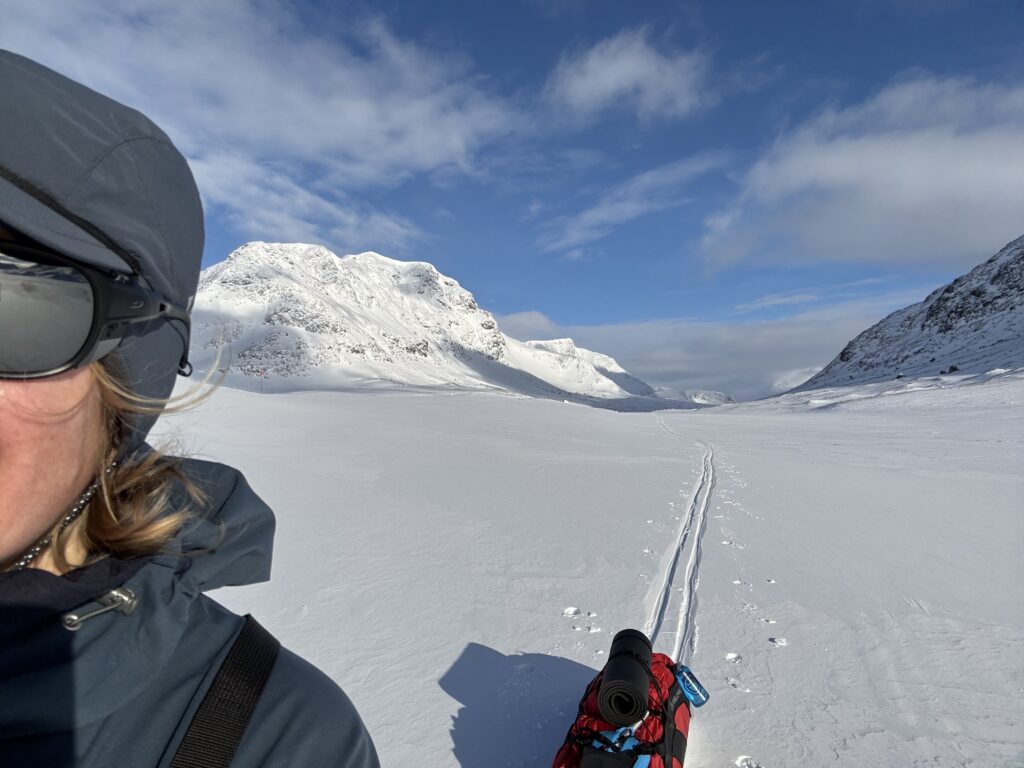 Sara Beckman är en mångårig friluftsentusiast och äventyrerska, som till vardags arbetar som naturvägledare på Upplandsstiftelsen. Vintrarna 2025 och 2026 har hon tagit långledigt för att skida i fjällvärlden– under 2026 med målet att skida längs hela fjällkedjan, från Grövelsjön till Treriksröset, en tur på ca 1300 kilometer, det s.k ”Vita bandet”.